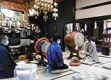 13:40~ 妙圀寺ガイド(涅槃図説明、太鼓体験、木魚体験等)