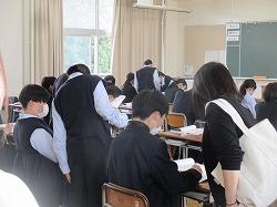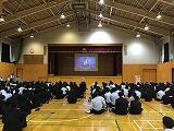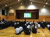 5月22日(月)7限目の時間に、交通安全及び薬物乱用防止教室を行いました。はじめに仁八校長先生の挨拶で、昨日開催された高校相撲金沢大会に出場した選手も応援する人もすばらしかったと労いの言葉があり、他人の役に立つためにこれからも自ら考えて一歩を踏み出すこと、健康で安全・安心できる学校になるように、善悪について今一度考えてほしいという話がありました。