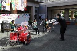 吹奏楽部の発表や3年生各クラスのダンス発表を中庭ステージで行いました。