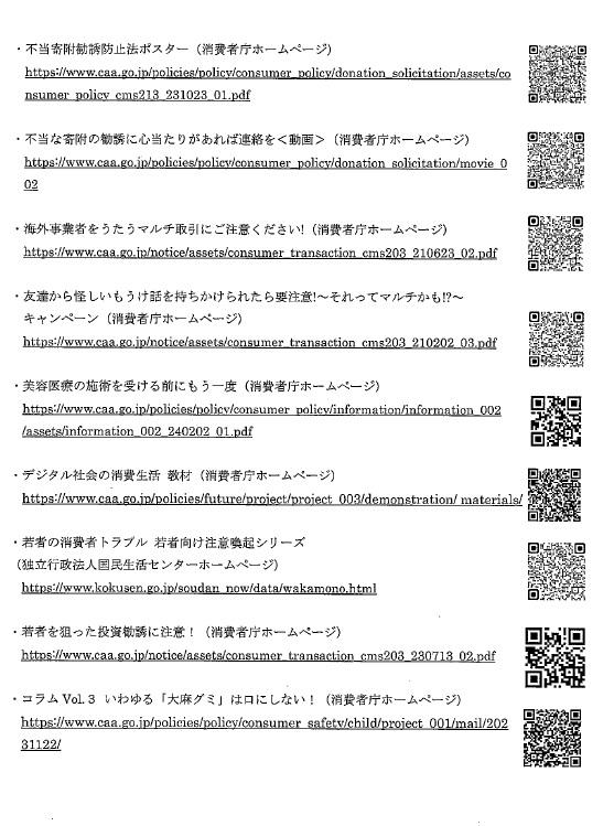 新入学生及び成年となる生徒等のみなさんに、文部科学省より消費者問題等に対して注意喚起のお知らせが来ましたので、別添のPDFをご覧いただき、トラブルに巻き込まれないようご注意ください。