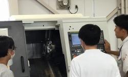 金属コマづくりでは、参加者自身がプログラムをつくり、NC旋盤での加工を体験しました。