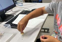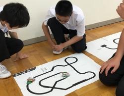 ロボットカーづくりでは、ロボットカーを組み立てて、プログラミングしコースを走らせました。