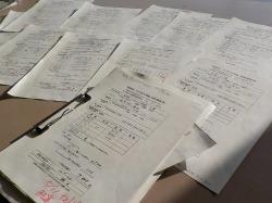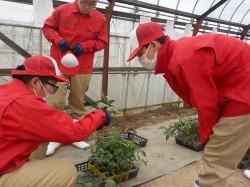 2~3人でグループになり、施設ごとに注文の種類と数を確認しながら間違いがないように苗を仕分けしていきます。大きさを揃えること、虫食いや傷みのないこと、丁寧に扱うことなど注意しつつ取り組みました。生徒の中には自分が巣立った園や学校の名前を見つけ、俄然やる気を見せていました。