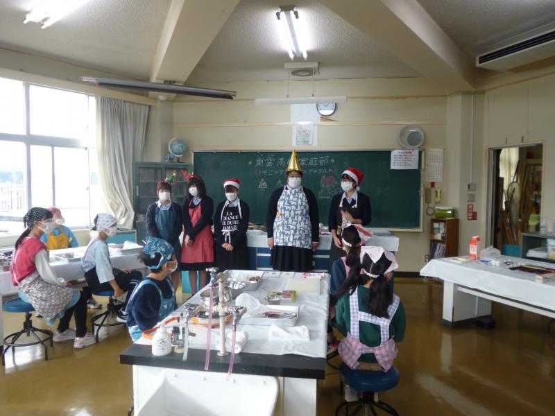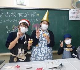 12月17日(土)午前10時~12時、いしかわ子ども交流センター七尾館で、家庭部員5人が、子ども達9人にお菓子作りを教えてきました。もうすぐクリスマスということで、「いちごのサンタさんのプチタルト」を作りました。