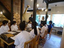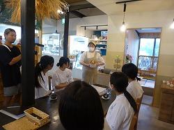 8月21日(月)、家庭部9人が「のと里山里海×高校生 未来の仕事プロジェクト」で、フィールドワークに行きました。家庭部は、のと里山里海のお米づくりについて考えています。「つばさむすびや」「れんげやの森」の2ケ所におじゃましました。「つばさむすびや」では、もみのついたお米が米粉に加工されるまでの工程や、農福連携の理念、米粉を使ったお菓子作りについて見学させていただきました。「れんげやの森」では、「つばさむすびや」で加工してきた米粉を使ってシフォンケーキを作っていただきました。地元でとれるお米をおいしく食べてもらうことを、店長さんがとても大切にされていることが伝わりました。