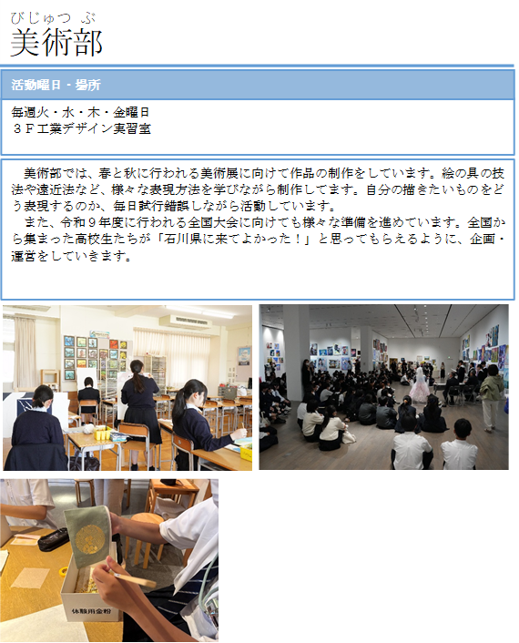 現在美術部では「2027いしかわ総文」に向けて様々な活動をしています。