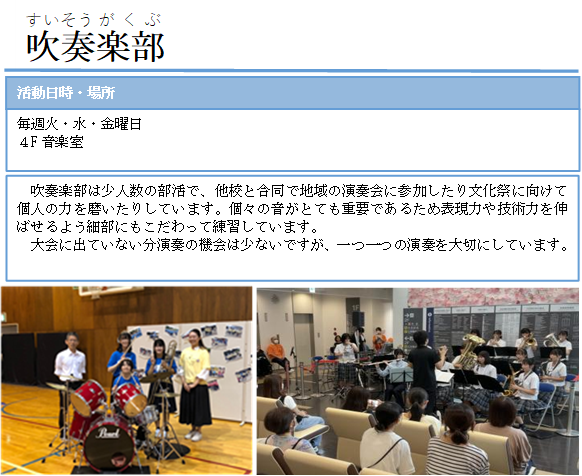 普段はほかの学校の演奏を聴く機会がほとんどないため、生徒は他団体のいいところについてメモを取りながら鑑賞していました。また、鑑賞する中で自身の演奏の課題点も多く見つかり、今後の演奏や練習方法の工夫についても学ぶことができました。