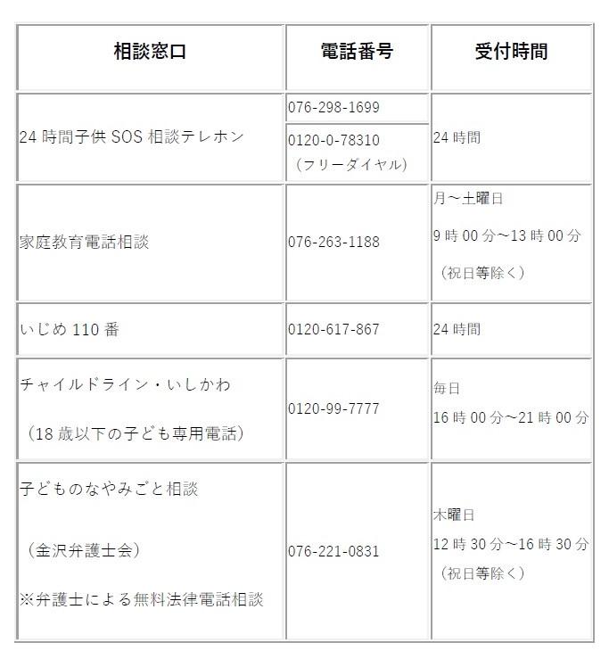 ◆ いじめや悩みに関する相談窓口