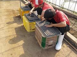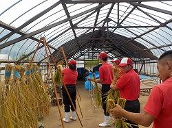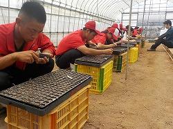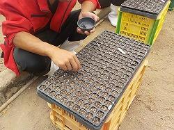 セルトレイから苗を起こして土をふるい、50本を一束にする調整を行いました。発芽率が70%を下回りましたがほぼ同じような大きさに成長したので、数は数えやすく、すぐに束にすることができました。予約注文で予定数量に達するほどの人気ぶりです。この後、順次出荷していきます。