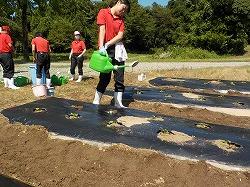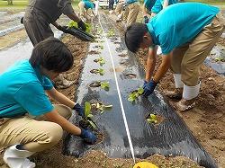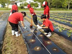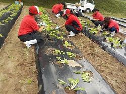 最初はぎこちなかった手つきも数をこなすうちに慣れ、要領もよくなってきました。立ったりしゃがんだりの繰り返しで作業は大変でしたが、1週間余りですべて定植することができました。
