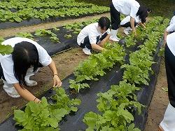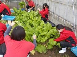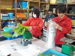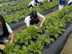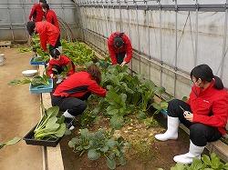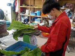 葉菜類の収穫が始まりました。今回は評価授業として、コマツナとカツオナを対象に収穫・袋詰めを行いました。
