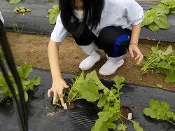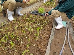 目安は生育が旺盛なものは残し、①生育が遅れていて小さいもの、②虫に葉が食べられているもの、が引き抜く対象ですが、生徒にとってはなかなか見極めが難しいようです。