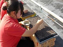ダイコンやハクサイに続いて、タマネギや葉菜類の種まき(播種)行いました。