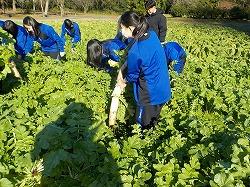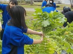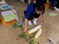 また抜き取ったダイコンの中には、小さいながらもすでにダイコンの形がわかるものもあり、驚いている生徒もいました。