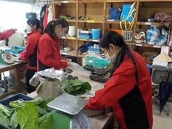 出荷し店頭に並ぶことを想定しながら、収穫した野菜の状態を確かめたり、計量間違いがないか、見映えよく袋に詰められたかを意識して取り組んでいました。
