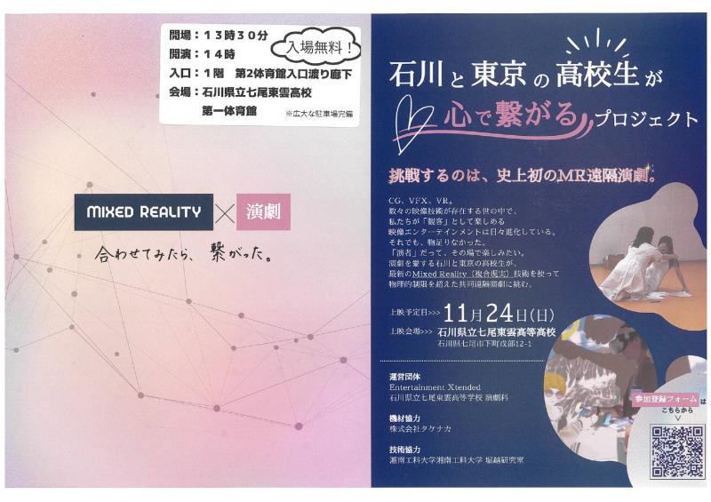 演劇好きな東京の高校生と演劇好きな石川の高校生が演劇史上初の MR 遠隔演劇に挑戦!