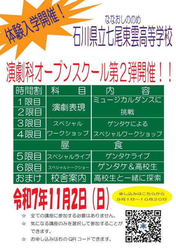 令和7年度 演劇科オープンスクール 実施要項 石川県立七尾東雲高等学校 演劇科