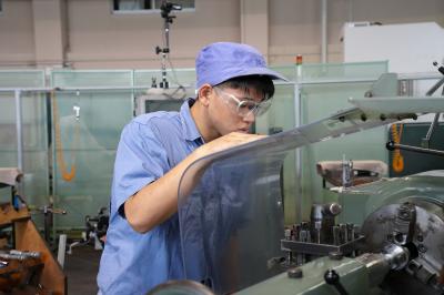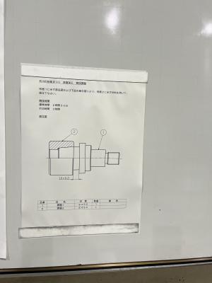 この課題は内径と外径にテーパ加工を施し、80%以上の接触を目指すことや、旋盤で加工した外径ねじに対して、検査用のねじゲージが脱着できるように追い込んだ加工を制限時間内に行うといった難しいものでした。考査や東雲祭など、とても忙しい中練習を積み上げた末平君は、最後まであきらめず加工を続け見事敢闘賞に輝きました。