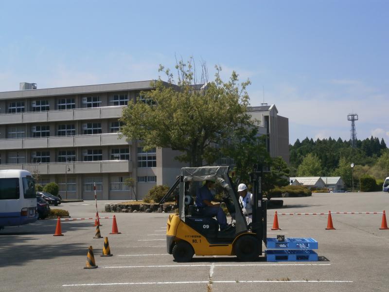 7月29・30・31日の3日間の日程で3年生の希望者を対象に、コマツ特別教育出張講習(小型フォークリフトの運転)が行われました。1日目は、安全教育などの学科講習、2日目と3日目は本校駐車場で実技講習を行いました。生徒は、運転操作・荷物運搬作業などをコマツ教習所講師の指導を受け、真剣な表情で受講し、将来活かすことのできる有効な資格を得る機会となりました。