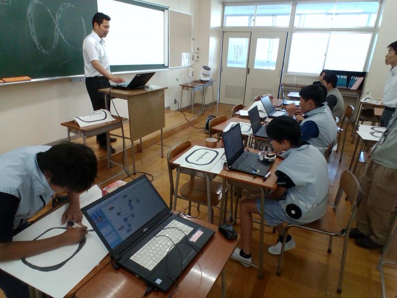 8月1日(金)の午後に「工業科ものづくり高校の魅力発信強化事業」を行いました。能登地区の小学生と中学生を対象に、2テーマのものづくり体験教室として、専用ソフトで設計し工作機械による金属コマづくりと専用ソフトでプログラムしたロボットカーを走行させる体験を行った後、ものづくり高校の魅力の説明と本校卒業生による高校生活や就職先についての講話が行われました。