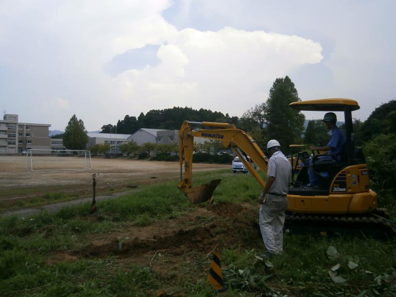 8月25・26日の2日間の日程で3年生の希望者を対象に、コマツ特別教育出張講習(小型建設機械の運転)が行われました。1日目は安全教育などの学科講習、2日目は本校の屋外敷地で実技講習を行いました。受講生徒は、運転操作・掘削作業などをコマツ教習所講師の方から指導を受け、真剣な表情で受講し、将来活かすことのできる有効な資格を得る機会となりました。