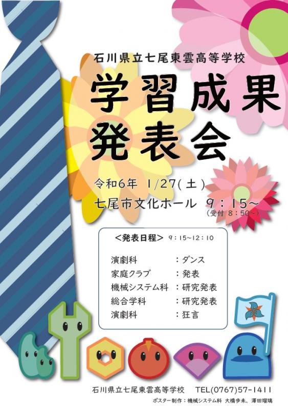 1月27日(土)に七尾市文化ホールにて、令和5年度学習成果発表会の開催を予定しております。