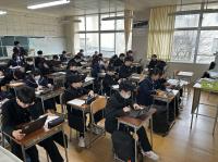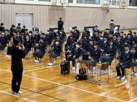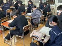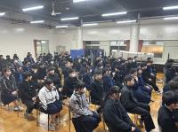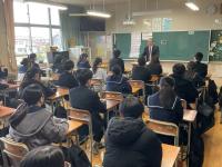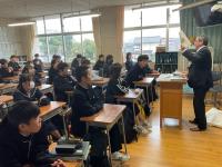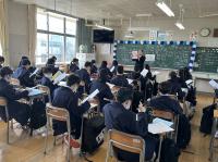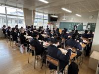 12月3日(水)5限、3年2組において石田恵一先生による受験前激励の授業が行われました。石田先生は生徒指導サポーターで本校元校長でもあります。間近に迫ってきた受験に対する不安を抱える生徒も多いことと思います。石田先生は「高い目標を持つこと」「みんなでがんばること」など具体的なお話で一人一人の心に灯をともしてくれました。この後、他の3クラスでも授業を予定していますので、石田先生よろしくお願いします!頑張れ3年生!