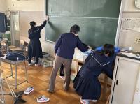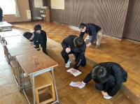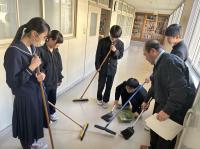 12月22日(月)、コミュニティ・スクール(CS)委員さん等9名にお手伝いをいただき2学期の大掃除を行いました。学校の先生とは違う地域の方々との触れ合いでは、いつもと違う生徒の表情がたくさん見られて、とても新鮮な印象です。おなじみの委員さんも多く、和気あいあいとしたとても良い雰囲気です。学校では、このような地域の方々との交流の機会をもっと増やしていけたらと願っています。ご協力をいただきました皆様、本当にありがとうございました!