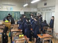 12月24日(水)、2学期最後の日です。リモートによる生徒会主催の人権集会では、全国人権作文コンテスト入賞作品「悪口」をもとに、「自分の言葉に責任を持つこと」などについてみんなで考えました。終業式に続き、2学期最後の学活は冬休みを前に、みんな和やかなムードです。本日の校長の話は「サンタクロースって本当にいるの?」という話題でしたが、本当にサンタクロースが登場した学年もありました。そんな中、3年生はさすがにピリッとして空気の中で、受験本番に向けての心構えなどを担任から聞いていました。2026年がさらに充実することを祈りながら、皆様、どうか良いお年をお迎えください!