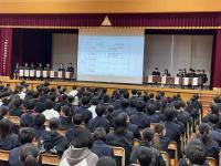 11月13日(木)6限、後期生徒総会を行いました。会長挨拶や各部部長の所信表明、質疑応答などに加え、各学年委員長の所信表明も行われました。生徒総会をはじめとする生徒会活動は、生徒たちが社会に一歩踏み出していくために極めて重要だと言えます。校長からは全校生徒に対し、「良き社会人」となるため、次の3点を身に付けてほしいとお願いをしました。「自分の考えをしっかり持つこと」「自分の考えをはっきり言えること」「自分の言ったことに責任をもつこと」生徒一人一人の大きな成長に期待をしています。