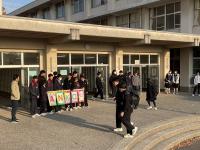11月14日(金)登校時より、生徒会企画の「ANKOグリーティングプロジェクト」が始まりました。部活動や1・2年のクラス単位で、約15分間、生徒玄関で挨拶を行う取組です。「A:新たな気持ちで、N:みんな仲良く、K:健康第一、O:オー!」というスローガンで、昨日の生徒総会にて提案されました。「ANKO(あんこ)」というのは、文化祭で生徒会がオープニングなどに「アンパンマン」の寸劇を行ったことがきっかけだそうです。今日は、野球部とソフトボール部が元気に盛り上げてくれました。12月中旬まで皆さん、よろしくお願いします!
