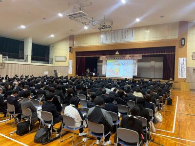12月3日(水)午前、3年生は思春期講座として菜の花助産院の助産師・公認心理士である植田幸代先生からお話を聞きました。一昨日も1年生にお話いただいたのですが、今回は3年生ということで、成長段階に応じた男女の性のしくみや性被害・性感染症などについて具体的な話題となっていました。興味や関心の高い内容も多く、生徒も真剣な態度で聞き入っていました。植田先生、貴重なお話を聞かせていただき、本当にありがとうございました!