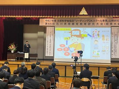 11月21日(金)午後から、本校において文科省指定「リーディングDXスクール事業」公開研究会並びに第65回石川県視聴覚教育研究大会(能美大会)を無事開催することができました。県内だけではなく日本全国からご参会をいただきました200名以上の皆様には、心からお礼を申し上げます。貴重な学びの場をお世話いただきました東京学芸大の堀田先生や高橋先生、そして小松教育事務所の指導主事先生方には感謝の気持ちでいっぱいです。ご参会の方々を含め、皆様には、今後ともよろしくお願い申し上げます。