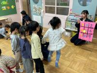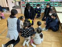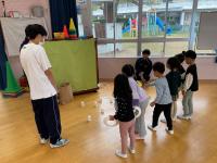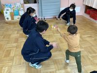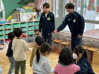 12月4日(木)午前、3年2組の生徒たちが大釜屋保育園を訪れ、園児と手作りのおもちゃで楽しく遊びながら、保育実習を行いました。1学期は1組と3組がすでに別の保育園で体験をしましたが、2学期は先週の4組に続き、今日が最後の実習です。外は雪もちらつく寒い日になりましたが、園の中は活気であふれています。中学生もみんな本当にいい顔で実習を楽しんでいました。ご協力をいただきました校区内の保育園の先生方、本当にありがとうございます!