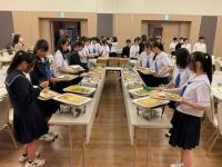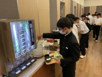 10月9日(木)、小松市の行政視察として、宮橋市長をはじめとする市教委関係の皆様が、配膳室の見学や給食の試食のため来訪されました。本日のメニューは、ビーフカレーライスとキャロットサラダです。井出市長の「合掌」で召し上がっていただき、小松市の皆様からは、「とても美味しい」との感想が聞かれました。他市の方々のこのような訪問はたいへん珍しく、貴重な機会をいただいたことに心から感謝いたします。小松市の皆様、本日はご来訪ありがとうございました!