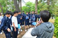 団員は今夏8月17日~20日に韓国培材中学校に訪れた旅の思い出を、映像を交えて報告しました。ソウルという都会にある学校施設は規模も大きく、体育館やサッカー場など、一つ一つが立派なこと。食事の慣習に違いを感じたこと、何より今年1月に訪日使節団と深めた絆を、今度は韓国で再確認できたことをそれぞれの言葉で語りました。