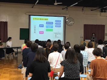 6月13日に給食試食会が開催されました。子どもたちの給食参観も兼ねて44名の方が参加されました。給食をおいしく頂きながら、栄養職員の山内先生による学習会がありました。給食で使用する食材や内容のこだわり、加賀地区ブロック大会に向けての食事内容など、分かりやすく説明して頂き大変参考になりました。