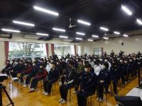 大雪の中での2学期最終日となりました。まずは、生徒会執行部主催で人権集会を行いました。全校生徒が事前に「いじりはいじめ」という人権作文を読み、感想を書いた上で、集会に臨みました。いじめをなくすためには、すべての人が当事者意識をもつことが大切です。お互いがいつでも、あたたかい言葉かけをできるような友だち関係をより多くの人と築いていきたいですね。「respect others」を胸に、3学期からも楽しい学校生活を送っていきましょう!生徒会執行部のみなさん、ありがとうございました。