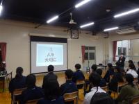 1月30日の5・6限目に、菜の花助産院の助産師さんである植田幸代先生を講師としてお招きし、1年生全員を対象に思春期講座を行いました。植田先生には、豊富なプレゼン資料をもとに1年生に分かりやすく性についてお話をしていただきました。事前に校長室でお話したときは、中学生に伝えたいことがたくさんあるけれども、時間的なことや2年生が近づいてきた時期的なことを考慮して内容を構成されたとのことでした。1年生の聴く態度も立派でしたし、大切な性について学ぶとても貴重な時間となりました。植田先生に心より感謝申し上げます。