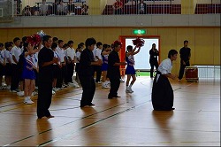 今年は体育館の改修のため、勤労者体育センターでの壮行会でした。しかも、いつもなら士気を高めるために出場部員全員がユニホーム姿で入場する形で進めるのですが、制服姿での入退場で行うこととなりました。しかし、昨年から寺井高校の「応援団」エールを頂いており、気勢を上げる会となりました。高校生の迫力ある応援に「大人」を感じる一瞬でした。