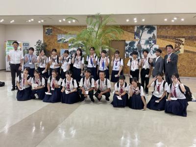 また、沖縄・恩納村交流事業には、本校から2年生5名が参加しています。今朝は7時に小松空港で出発式をして、3泊4日の研修に出発しました。能美市と教育交流パートナー協定を結ぶ恩納村では、OIST(沖縄科学技術大学院大学)の見学や恩納村立うんな中学校との交流などが予定されています。5名には、市の代表として、しっかり勉強してきてほしいと思います。