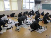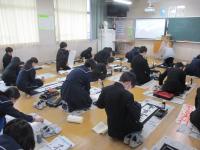 1年生のみでしたが、1月9日(火)に書き初めを行いました。静かな雰囲気の中、生徒は一生懸命集中して筆を走らせていました。心を込めて言葉を表す書き初めは、とても良い日本の伝統行事であると思います。生徒にはこれからも日本の伝統的な行事や文化を体験したり後世に伝えていったりしてほしいと願っています。“いいねぇ 根上中!”