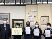 12/2(木)に、1年生が応募した「税に関する標語」の表彰式が行われ、本校の入選者4名が参加しました。標語には、税金を有意義に使おうというメッセージがこめられていました。入選者のみなさん、おめでとうございます。