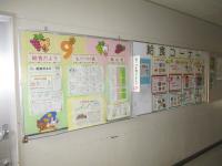 給食室前の掲示物が一新されました。食に関して、生徒たちが大切な情報を得てくれればと思います。また、今日9月9日の献立は「お月見献立」でした。とても美味しかったです。2学期の始まりとともに再開した学校給食。調理員の方々への感謝の気持ちを忘れずに、毎日美味しくいただきたいものです。