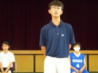 本日、2年生は体育館に集まり、1・3年生は教室でオンラインを活用して激励会を行いました。キャプテンの力強い決意表明と凛々しいユニフォーム姿に頼もしさを感じました。生徒会代表の太田さんからの激励にもあったように、ぜひ試合を楽しんできてください。そして、周囲への感謝の気持ちを忘れずに…きっと良い結果につながるはずです。“がんばろう 根上中”