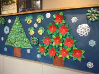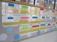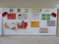 掲示物が“冬らしさ”を伴って一新されました。はまなす学級の生徒たちが手伝ってくれたおかげで、職員室前が素敵な掲示物で飾られています。給食室前の給食コーナーも、クリスマスプレゼントを想起させる楽し気な掲示物になっています。2学期も残りあとわずかですが、本校に来校の際は、掲示物もぜひご覧ください。