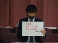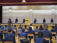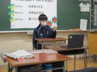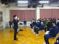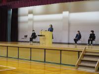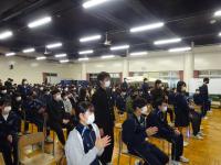 大雪の中での2学期最終日となりました。まずは、生徒会執行部主催で人権集会を行いました。全校生徒が事前に「いじりはいじめ」という人権作文を読み、感想を書いた上で、集会に臨みました。いじめをなくすためには、すべての人が当事者意識をもつことが大切です。お互いがいつでも、あたたかい言葉かけをできるような友だち関係をより多くの人と築いていきたいですね。「respect others」を胸に、3学期からも楽しい学校生活を送っていきましょう!生徒会執行部のみなさん、ありがとうございました。