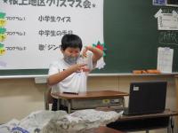 今日13日の2限目に、根上地区の特別支援学級をオンラインでつないでクリスマス会が行われました。本校の生徒がサンタクロースに扮して進行役を努めてくれました。和やかな雰囲気の中、クイズあり、手品あり、歌ありととても楽しいひとときを過ごすことができました。準備はたいへんだったろうけれど、みんなで協力し合う姿がとても印象的でしたよ。福岡小学校、浜小学校、根上中学校の児童生徒の皆さん、そして先生方、お疲れさまでした。“いいねえー 根上地区のみんな!”