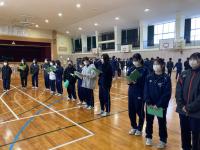 本日、今年度の修了式を行いました。久しぶりにオンラインではなく、対面で実施することができました。各クラス、私語なく整然とした態度で入場し、先生方のお話をしっかりと聴くことができてすばらしかったです。春休みが終われば、新しい学年での活動がスタートします。根上中学校の歴史の新しい1ページを、全員で描いていきましょう。”頑張ろう!根上中!!”