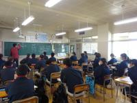 公立入試に向けて、3年生の事前集会が開催されました。以前、進路が決定している生徒に話す機会があったときに、「学年の雰囲気づくり」をお願いしたところ、みんなが協力してくれました。ここまで良い雰囲気の中、学年が一丸となって学習に取り組んでくれたと聞いています。ですので、今回はまず「雰囲気づくりへの感謝」、そして「入試の激励」と「卒業式までの過ごし方」を伝えました。入試では、これまで培ってきた力を存分に発揮してほしいと願っています。ゴールはもう少しです。“がんばろう 根上中3年生!”